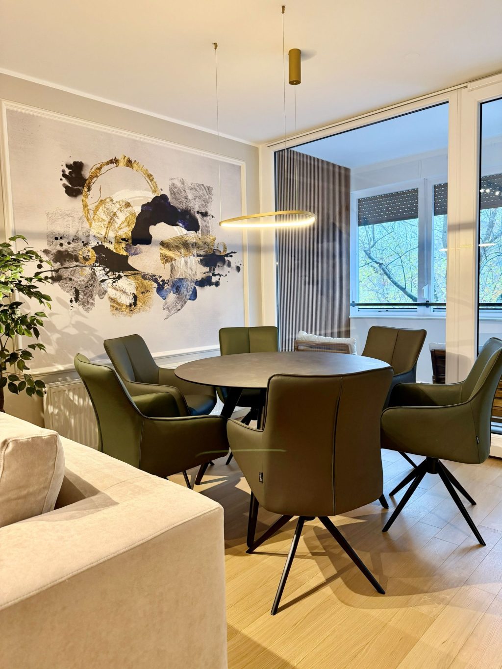 Ostatak stana stilom prati taj prvi dojam. Tapeta unutar štukature dominira blagovaonicom i povezuje vanjski i unutarnji dio stana.