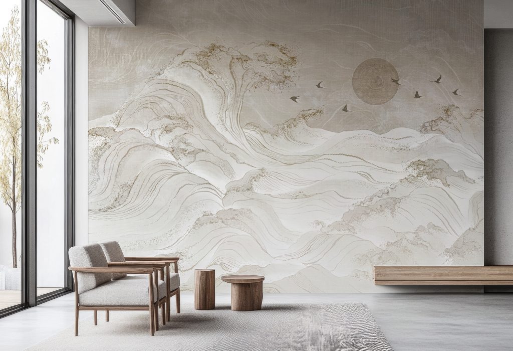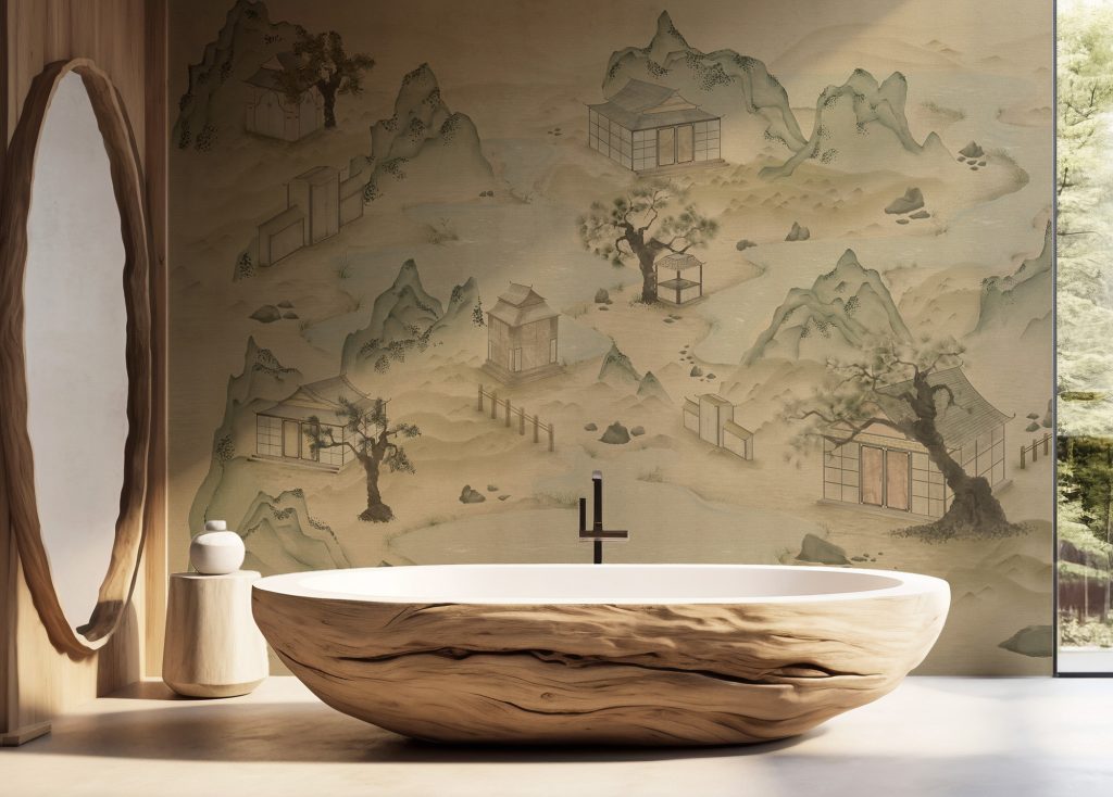 Ove tapete ne ulaze u prostor da bi dominirale. One ga pretvaraju u tihu pozornicu. U dnevnom boravku unose osjećaj prostranosti i čistoće. U blagovaonici stvaraju atmosferu rituala — trenutak u kojem usporavamo. U spavaćoj sobi djeluju poput meke kulise za odmor. A u kupaonicama, gdje je igra vode prirodni nastavak japanske poetike, ove tapete izgledaju gotovo nestvarno.