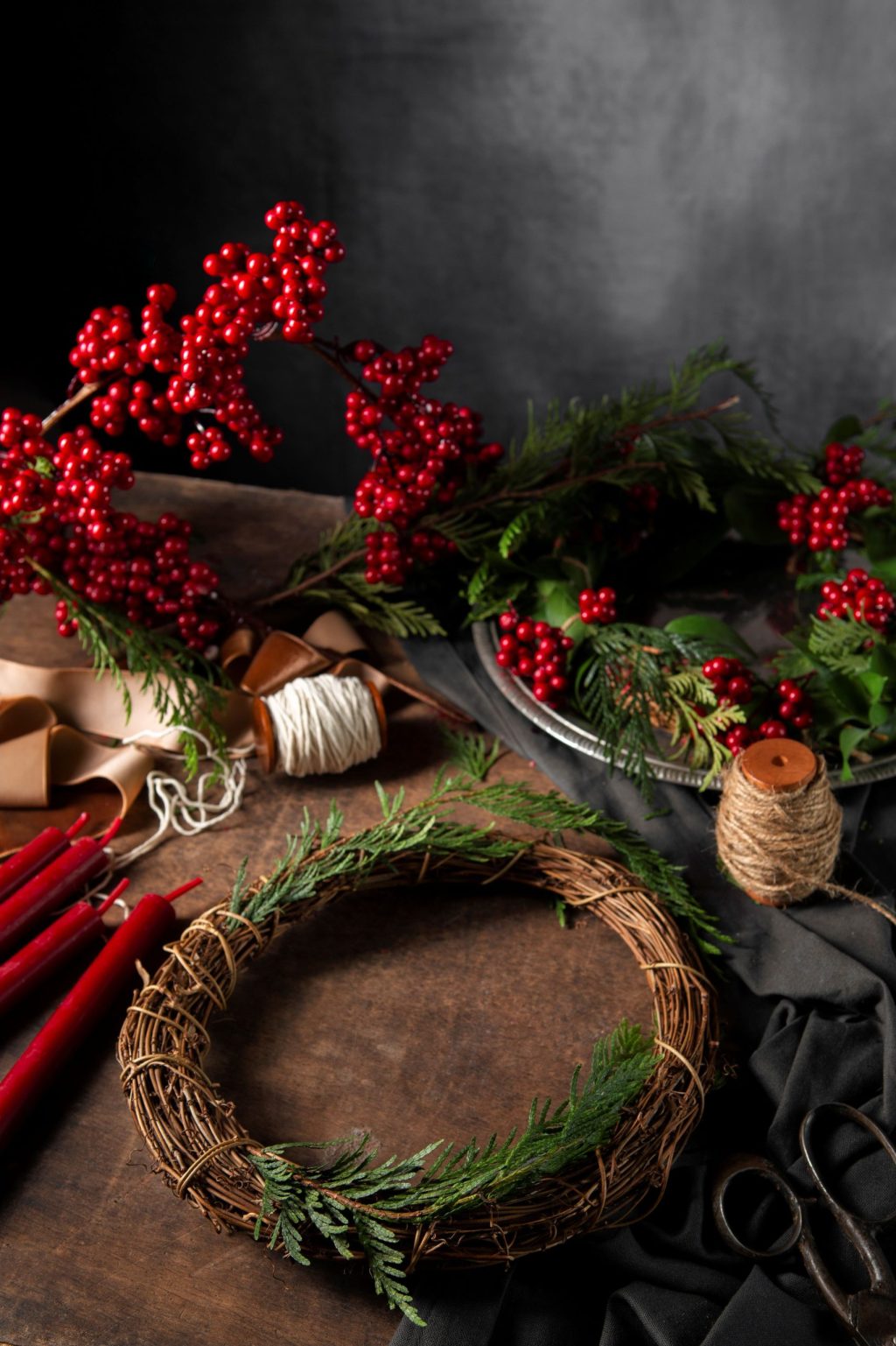 Sve češće viđamo minimalističke vijence koji se oslanjaju na ideju “manje je više”. Dovoljno je nekoliko grančica božikovine pričvršćenih na zeleni kostur vijenca. Taj jednostavan pristup unosi mekoću u moderan interijer, a istovremeno zadržava onaj skandi dojam pročišćenosti.