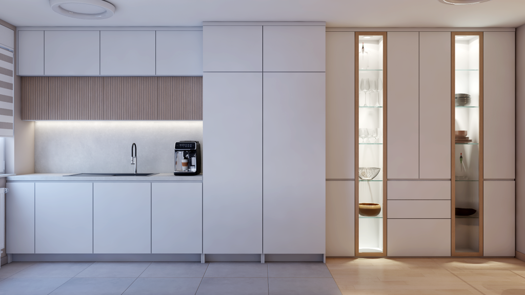Kuhinja je bila posebno važna jer se u ovoj obitelji stvarno kuha. Htio sam joj dati prostranost, logičan raspored i toplinu, pa smo dio fronti izradili od drvenih letvica kako bi prostor dobio teksturu i ritam. Nezgodnu istaku sakrili smo tako dobro da danas izgleda kao da je dio cijele kuhinje. Bilo je to jedno od onih rješenja koja vas nasmiju jer znate da ste pobijedili „arhitektonsku prepreku“ protiv koje biste inače vodili tihu borbu godinama.