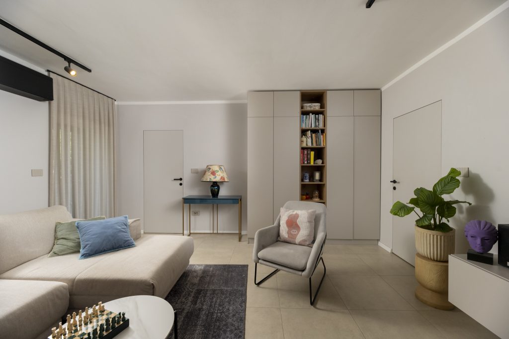 Materijali su birani s naglaskom na dugoročnu upotrebu i neutralnu estetiku. U dnevnim prostorima korištene su keramičke pločice u toplim tonovima, dok su spavaće sobe obogaćene drvenim podovima – parketom koji unose dodatni osjećaj topline i intime. Cjelokupan interijer oblikovan je kao nenametljiv, ali karakteran prostor, koji se prilagođava životu svojih korisnika, a ne obrnuto.
