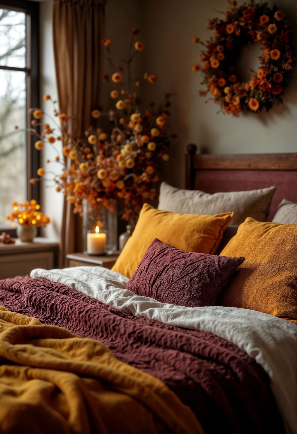 Sve počinje s posteljinom. Zimski mjeseci doslovno traže slojeve: mekani pamučni saten ili perkal za udobnost, uz dodatni prekrivač, vuneni plašt ili debeli pleteni pokrivač. Kombinacija različitih tekstura stvara osjećaj slojevitosti koji vizualno grije prostor. Ako želiš još jači “winter mood”, odaberi posteljinu u toplim tonovima – zagasitoj zelenoj, tamnoj šljivi ili boji karamele.
