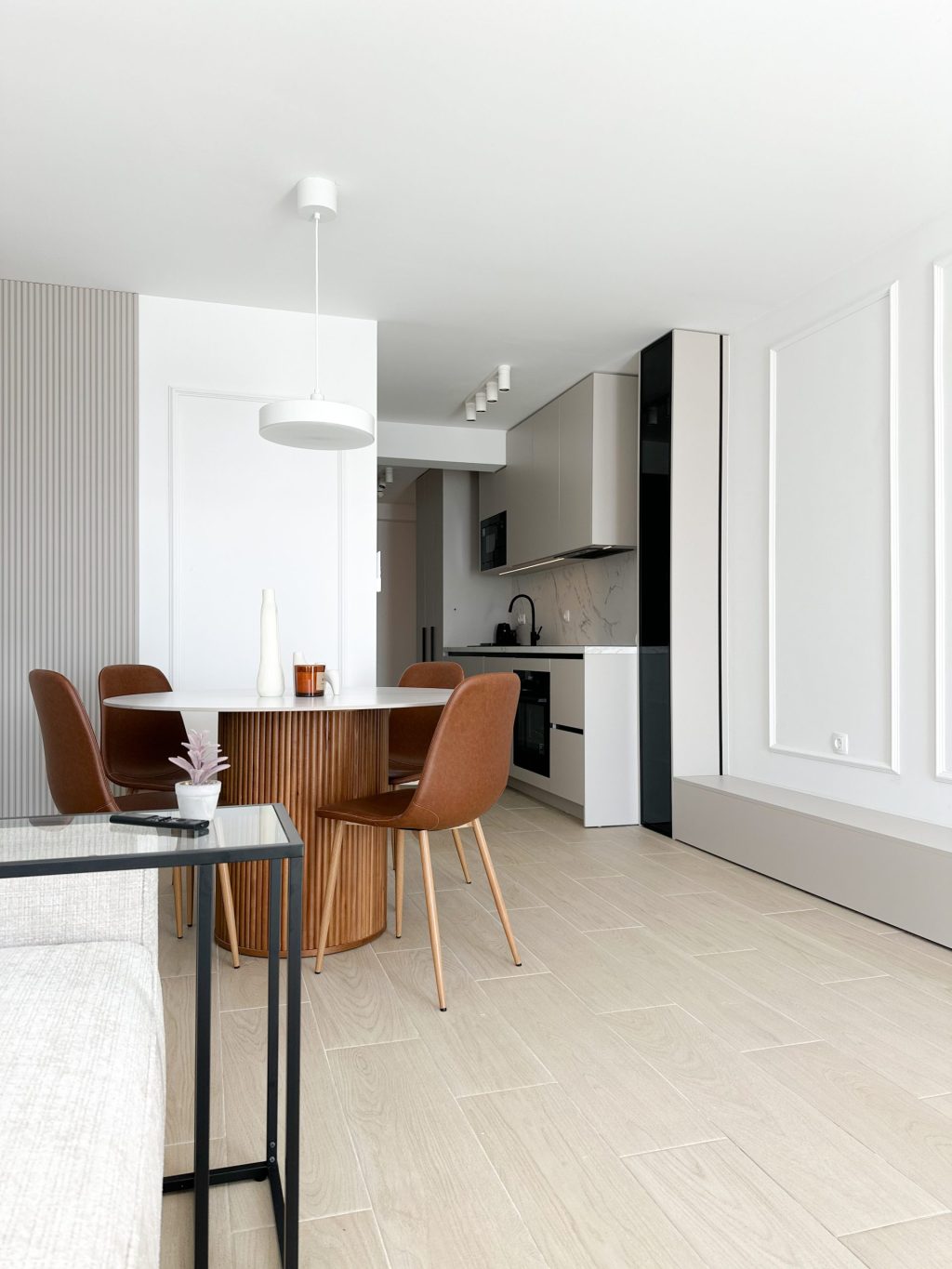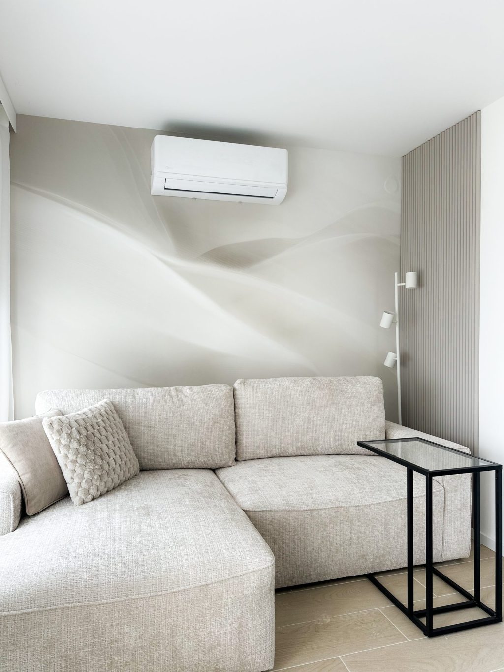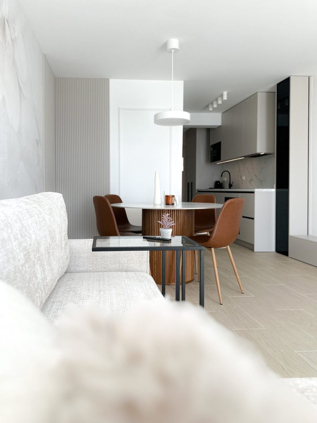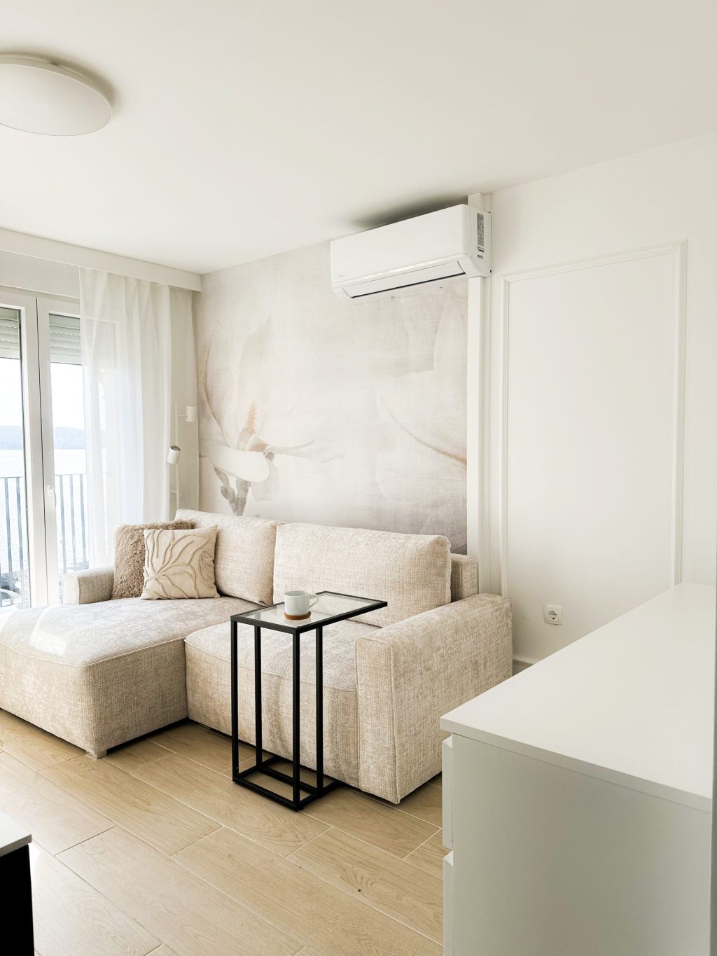 Od samog početka dizajnericu interijera Petru Zastavniković iz studija Pure line vodila je ideja stvaranja prozračnih, toplih interijera – onih u kojima se lako diše i boravi s lakoćom. Kroz sve tri etaže provlači se nježna kašmir siva, nijansa koja u kombinaciji s bijelim zidovima unosi sklad, toplinu i diskretnu eleganciju.