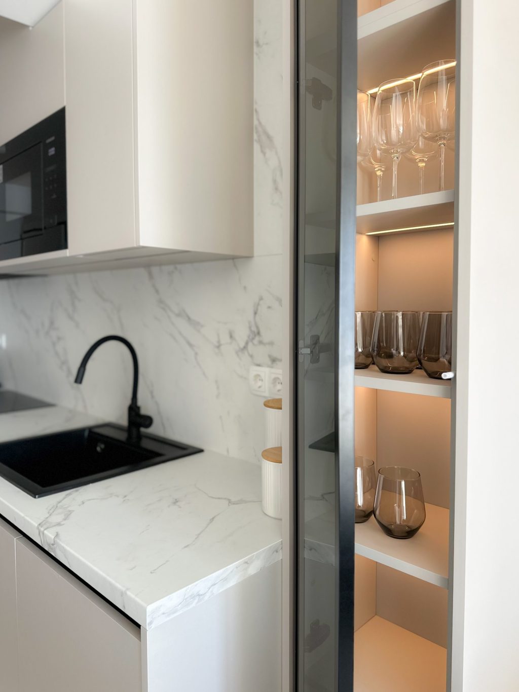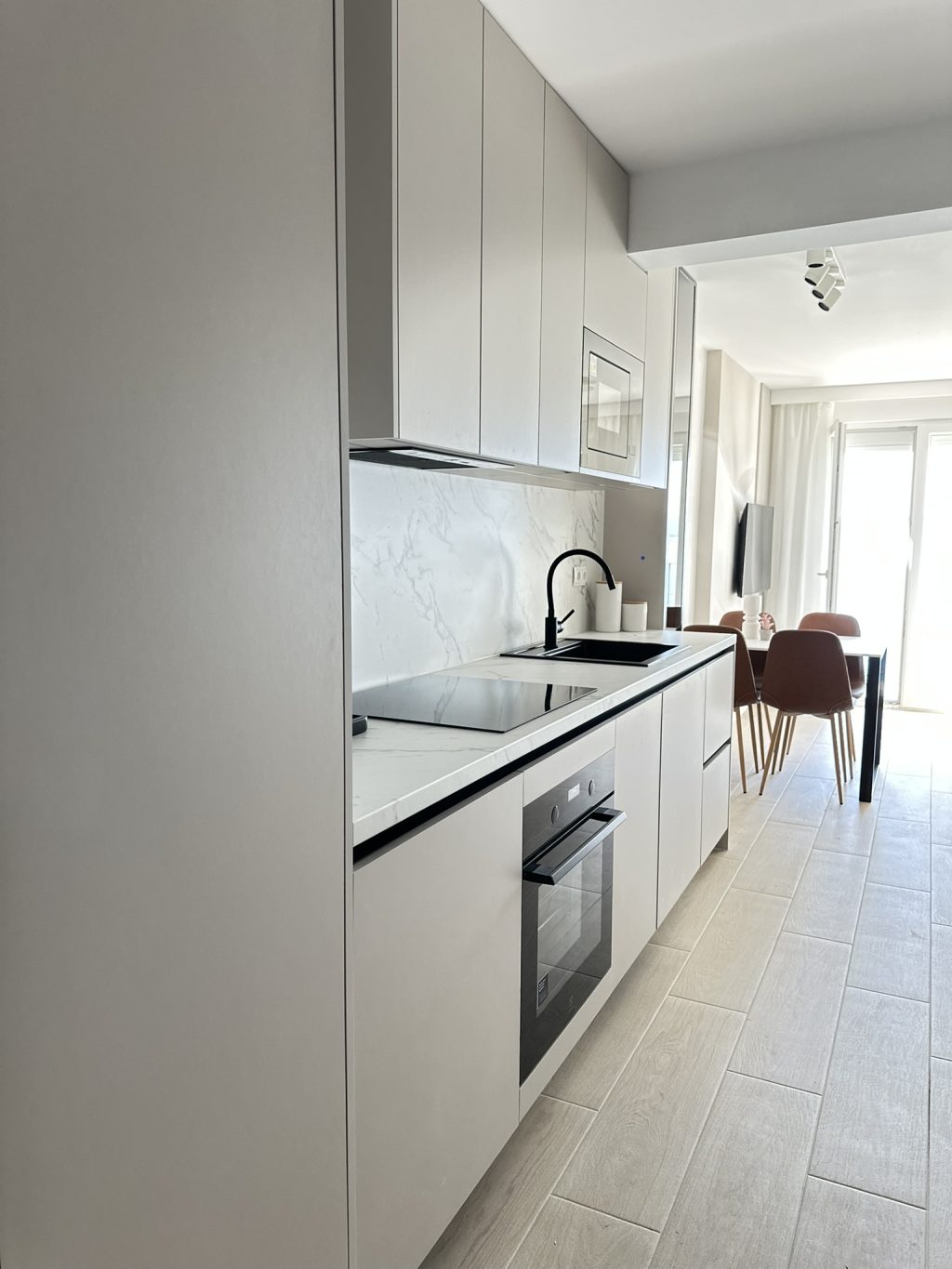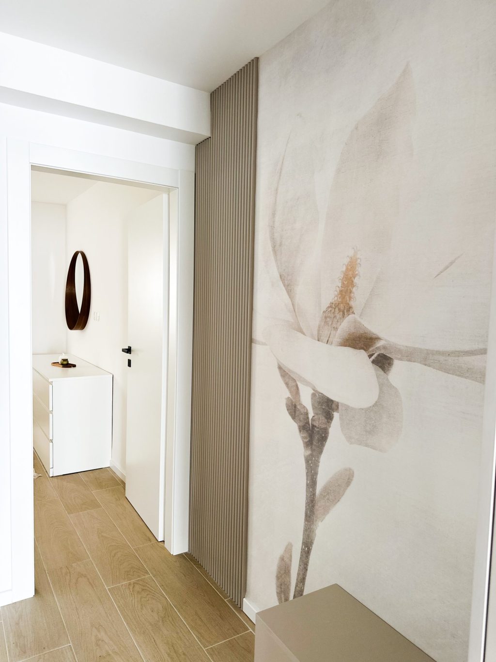Tapete Magis Wall zaokružile su priču dajući prostoru dozu vizualne ujednačenosti, ali i suptilnu razliku između apartmana. Svaki od njih ima svoj osobni pečat, prepoznatljiv tek na drugi pogled. U spavaćim sobama prevladava Ikea namještaj, dok su funkcionalno zahtjevniji dijelovi – kuhinje i kupaonice – izrađeni po mjeri u suradnji s BK interijerima. Cjelinu dodatno oplemenjuju Adria decor letvice u kašmir nijansi te Kalcerove štukature, koje zidovima daju profinjenu dinamiku.