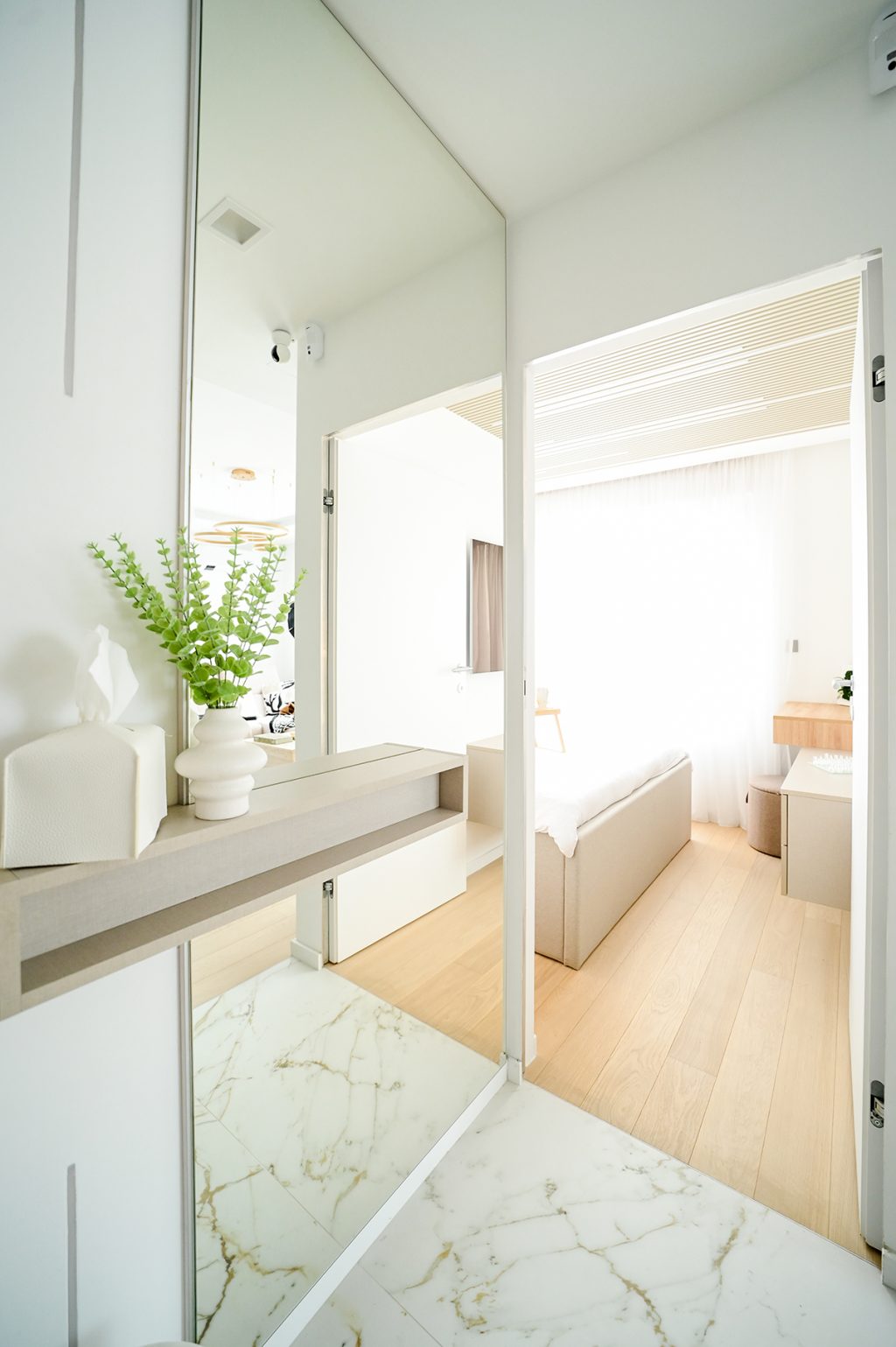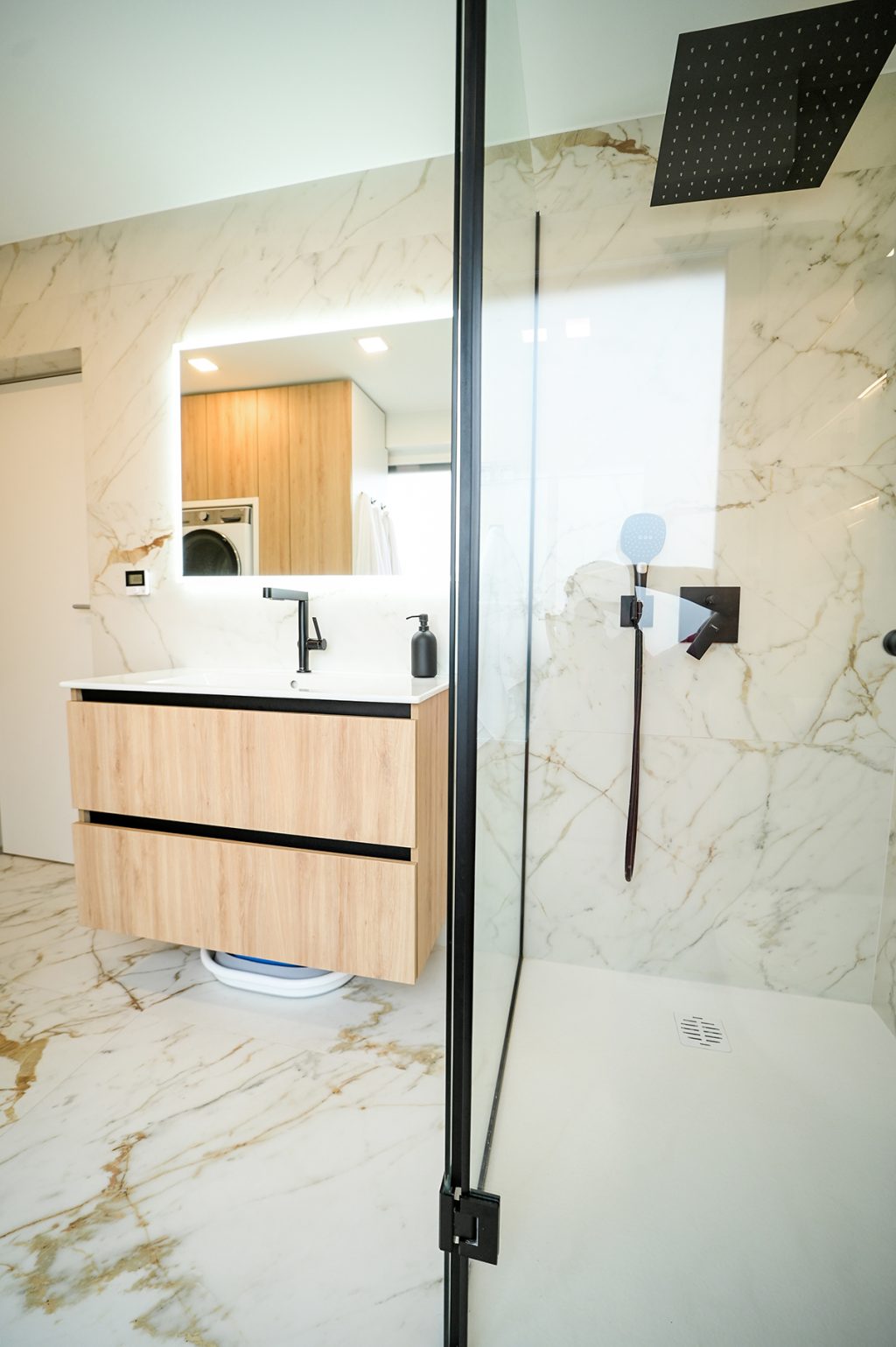 Prostor je zamišljen kao minimalistički, ali s puno pažnje posvećene detaljima, a ključni element u njegovoj transformaciji bila je LED rasvjeta, koja je postala zaštitni znak Silvijinih projekata. Ova vrsta rasvjete ne samo da prostoru daje potrebnu svjetlost, već ga čini vizualno većim i luksuznijim. LED rasvjeta, smještena na strateškim mjestima, stvorila je ugodnu atmosferu koja istovremeno naglašava arhitektonske linije i daje dojam prozračnosti.